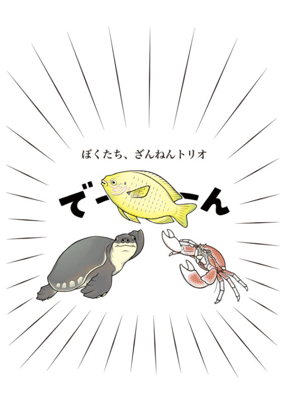 「サンシャイン水族館×高橋書店『ざんねんないきもの事典』シリーズ ざんねんないきもの展」いきものイラスト