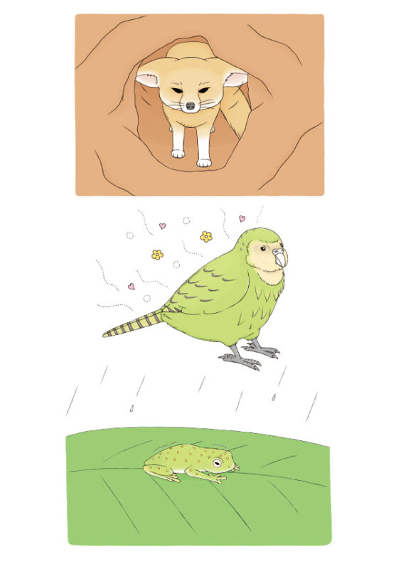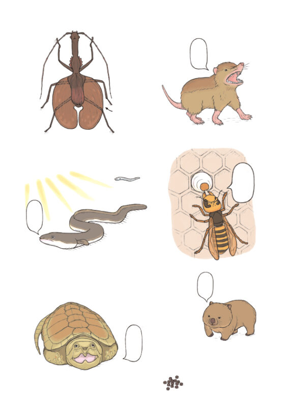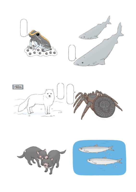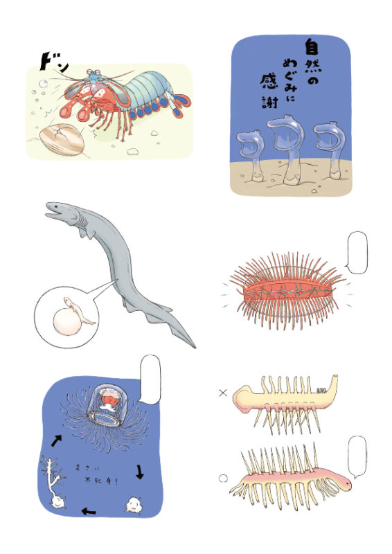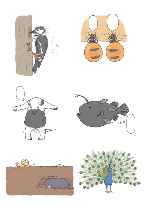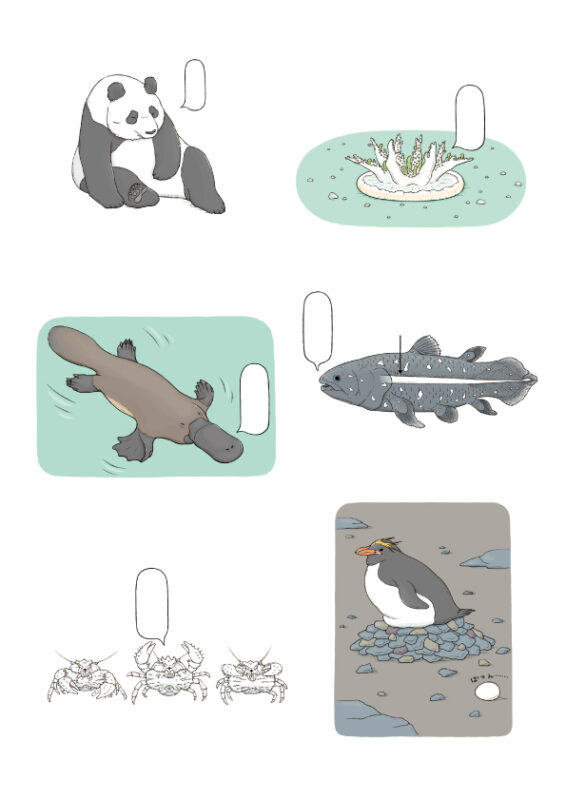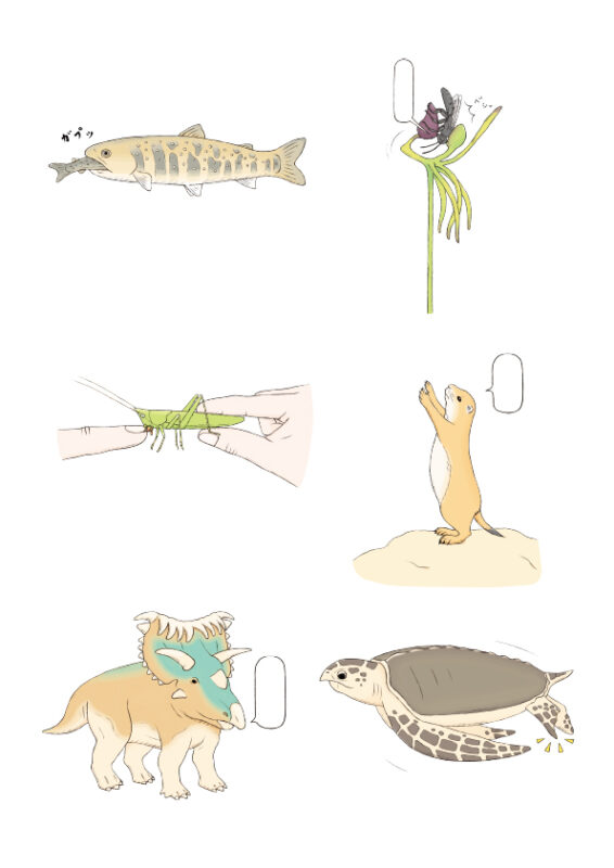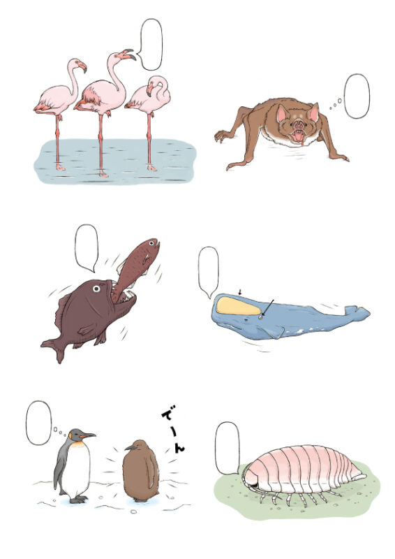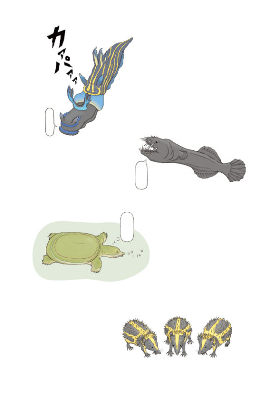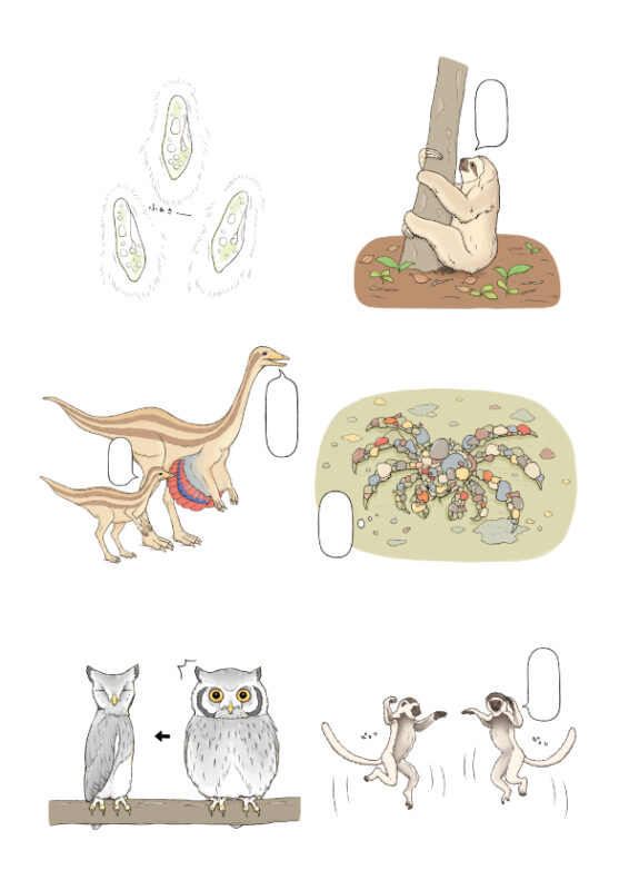 おもしろい!進化のふしぎ もっとざんねんないきもの事典 本文いきものイラスト