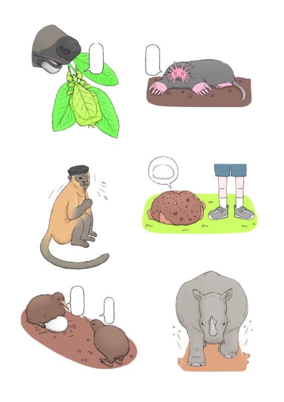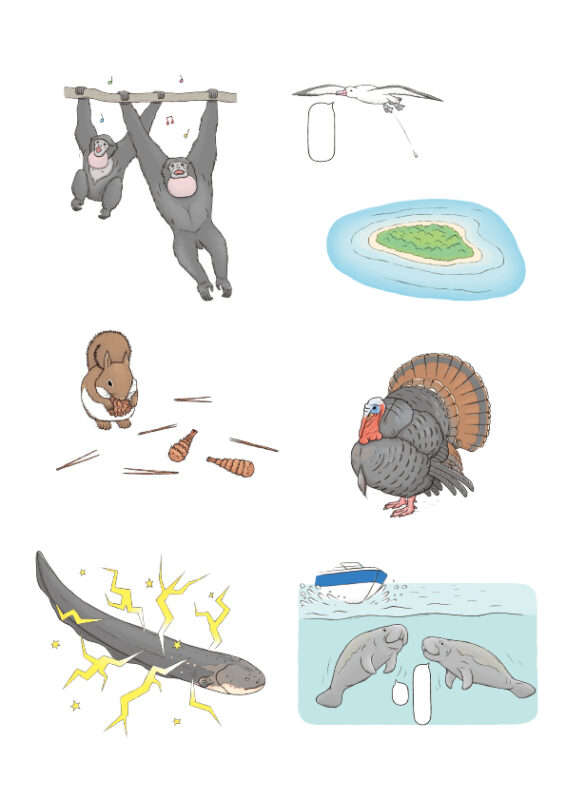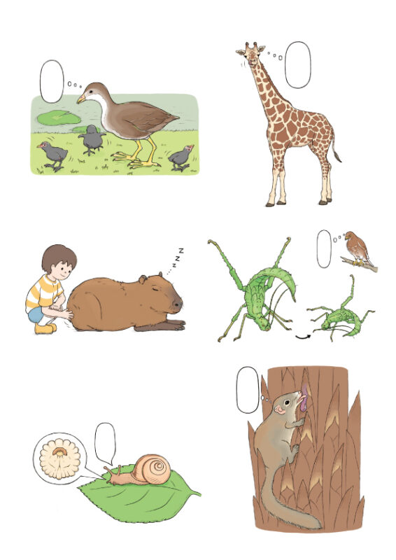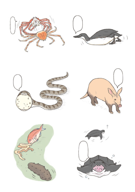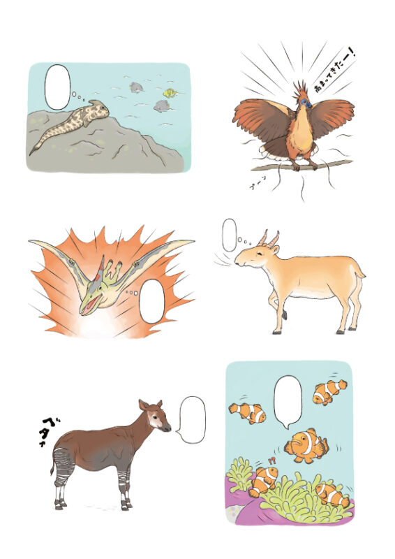 おもしろい!進化のふしぎ 続々ざんねんないきもの事典 本文いきものイラスト