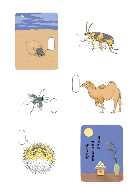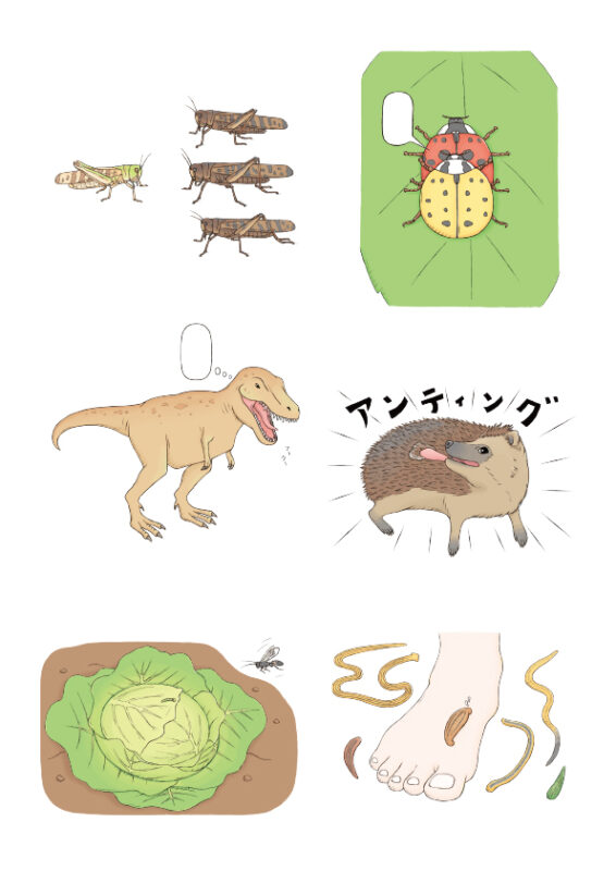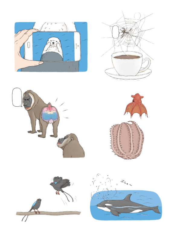おもしろい!進化のふしぎ さらにざんねんないきもの事典 カバーいきものイラスト