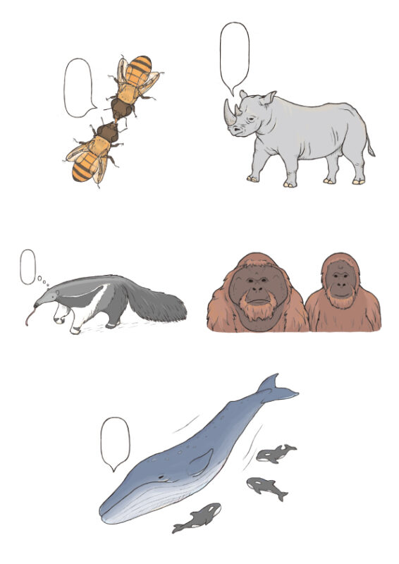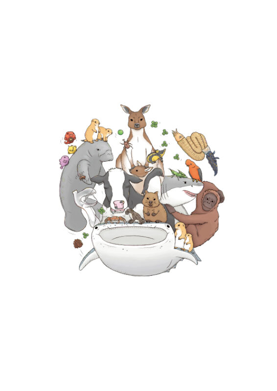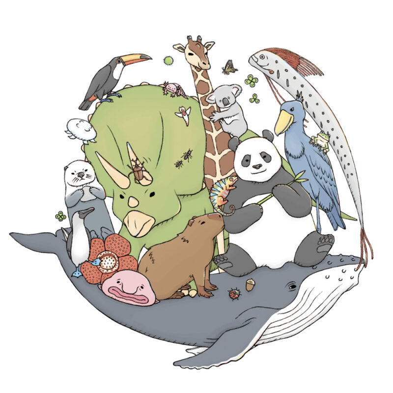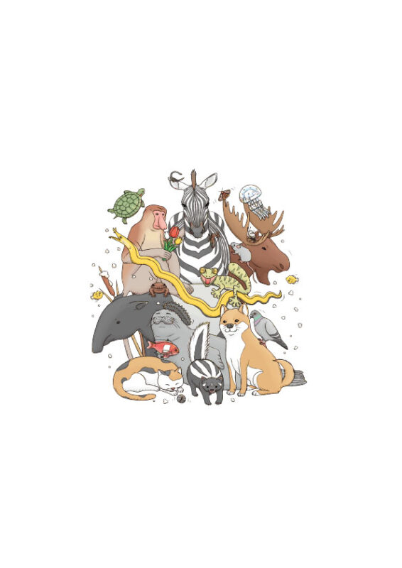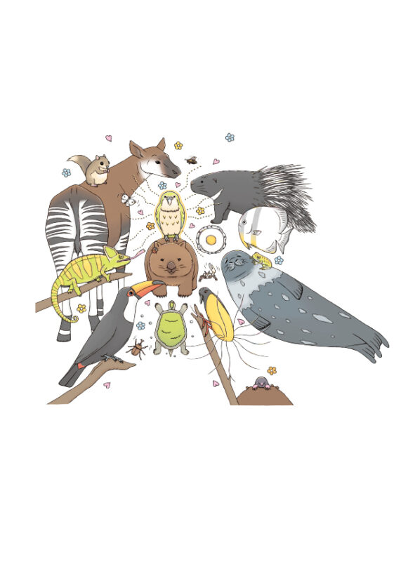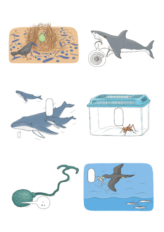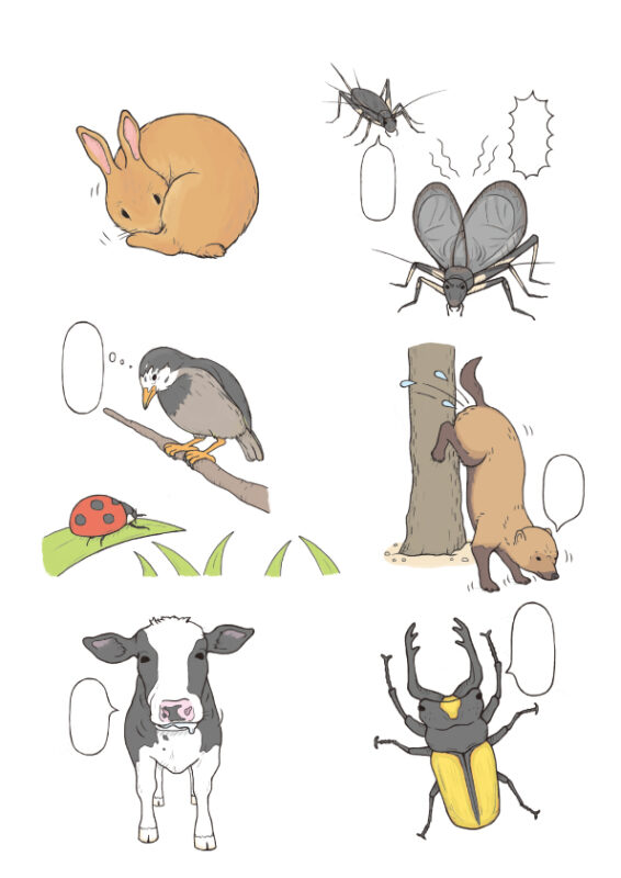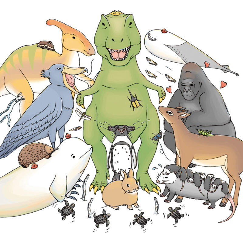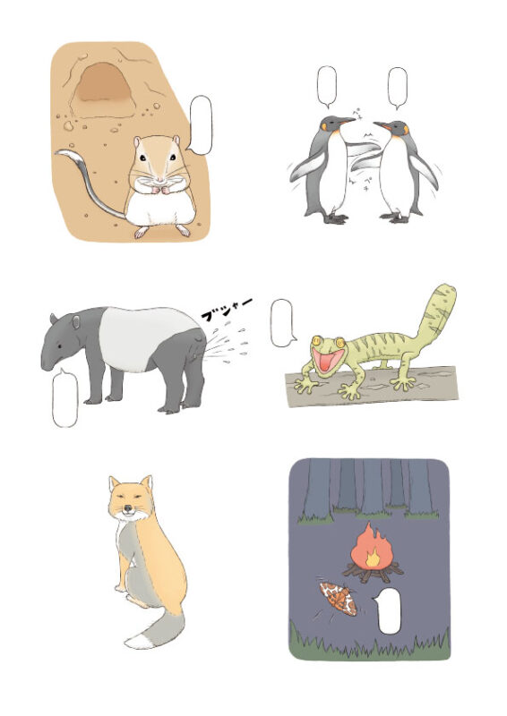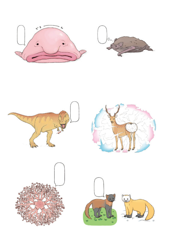 おもしろい!進化のふしぎ もっとざんねんないきもの事典 カバーいきものイラスト