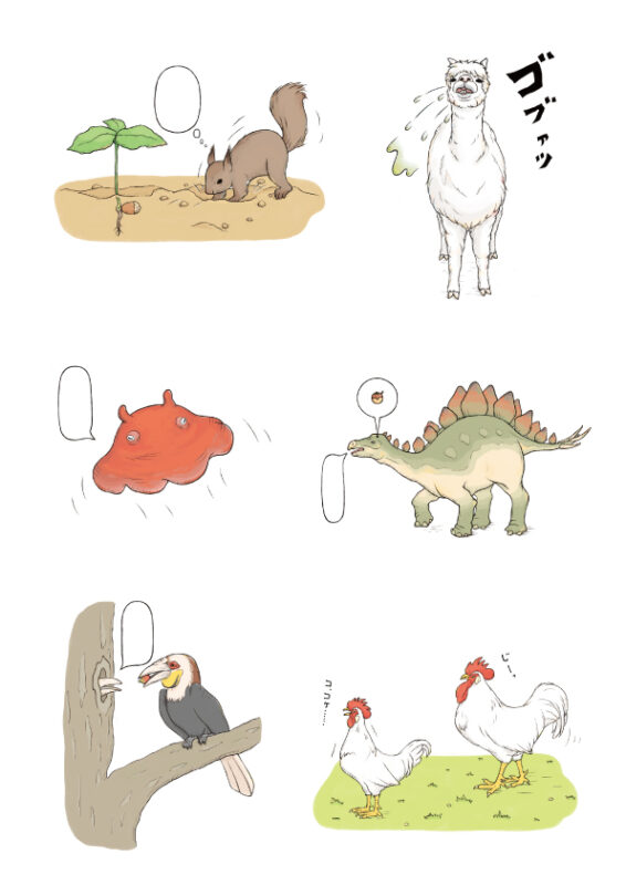 おもしろい!進化のふしぎ 続々ざんねんないきもの事典 カバーイラスト