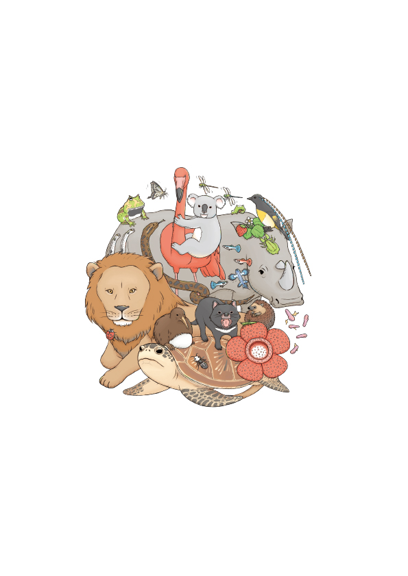 おもしろい!進化のふしぎ ざんねんないきもの事典 カバーイラスト